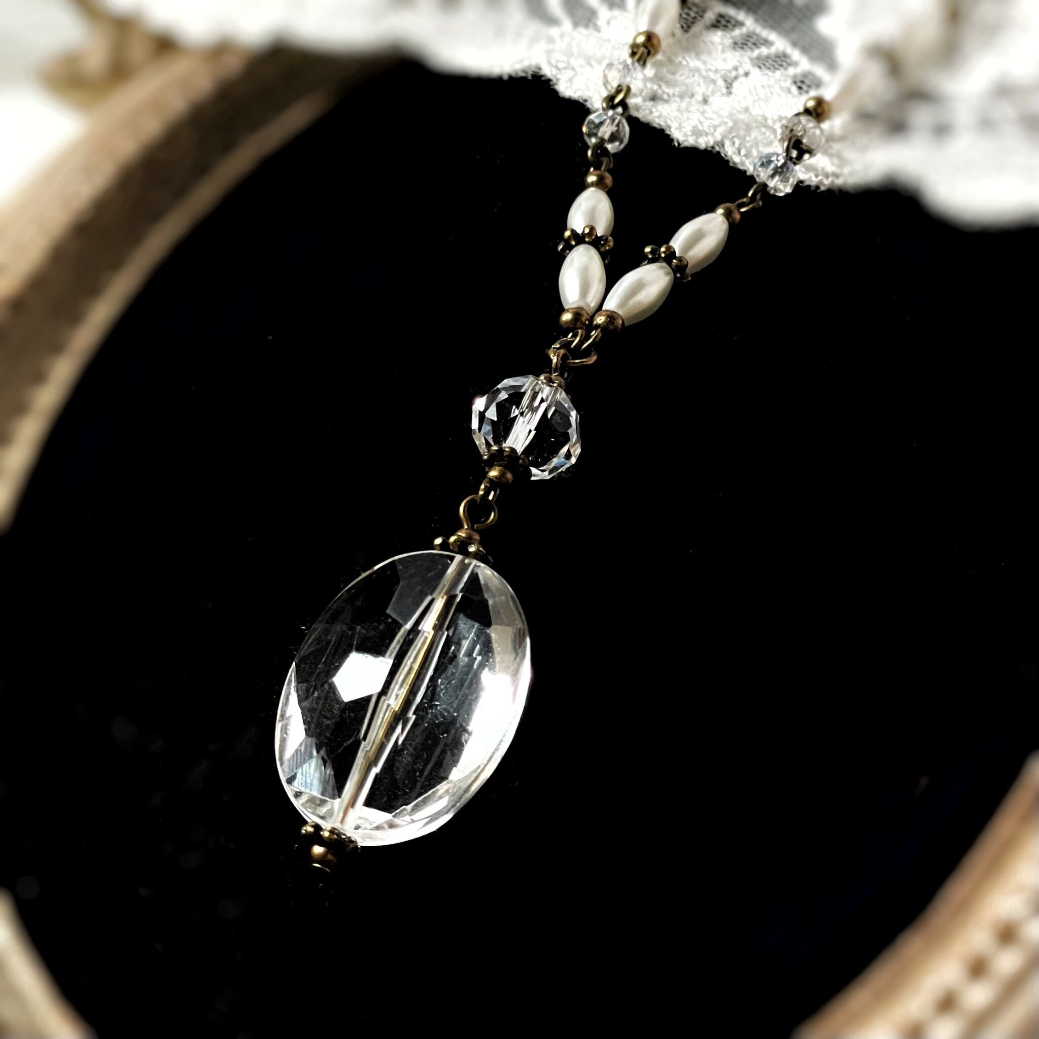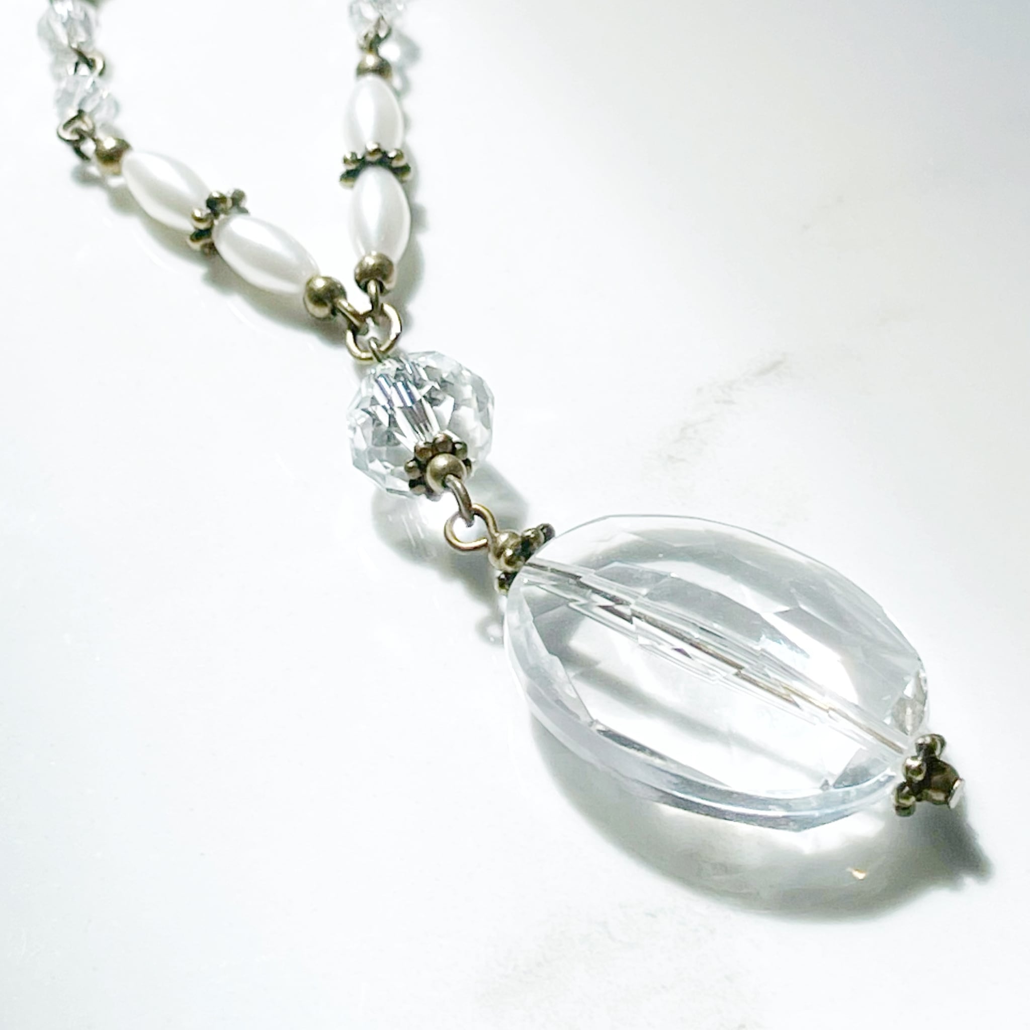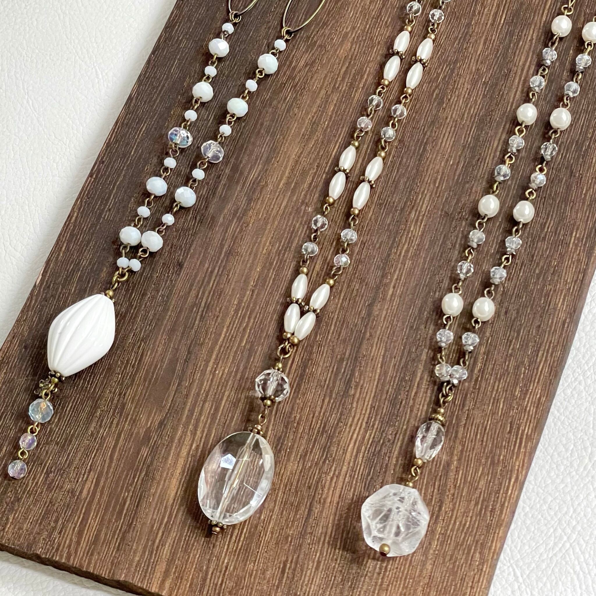 輝く氷のような ヴィンテージビーズの ロングネックレス