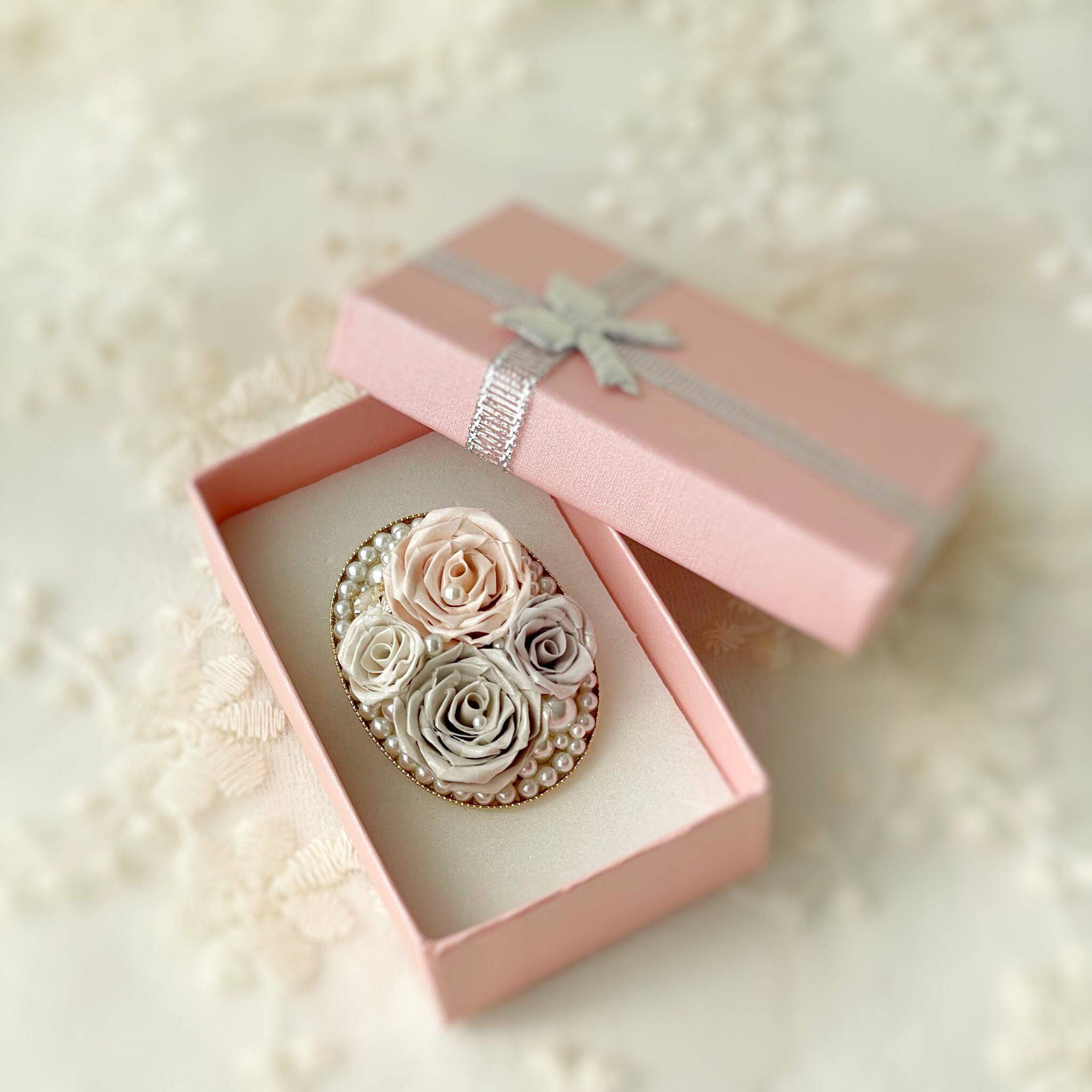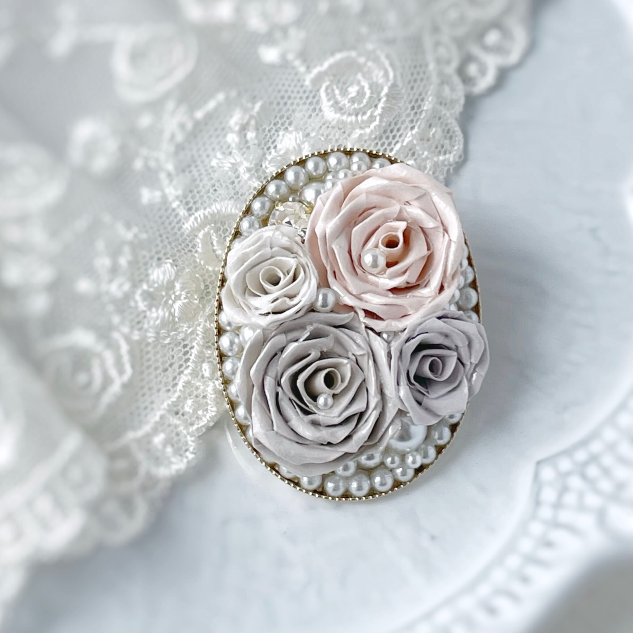 【ニュアンスカラーでエレガントなブローチ 】ロザフィ薔薇