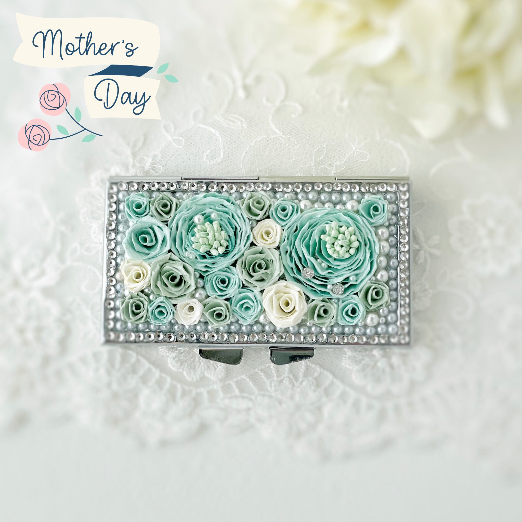 【 お薬を飲むのが楽しくなる薔薇のケース】ペパーミントグリーン