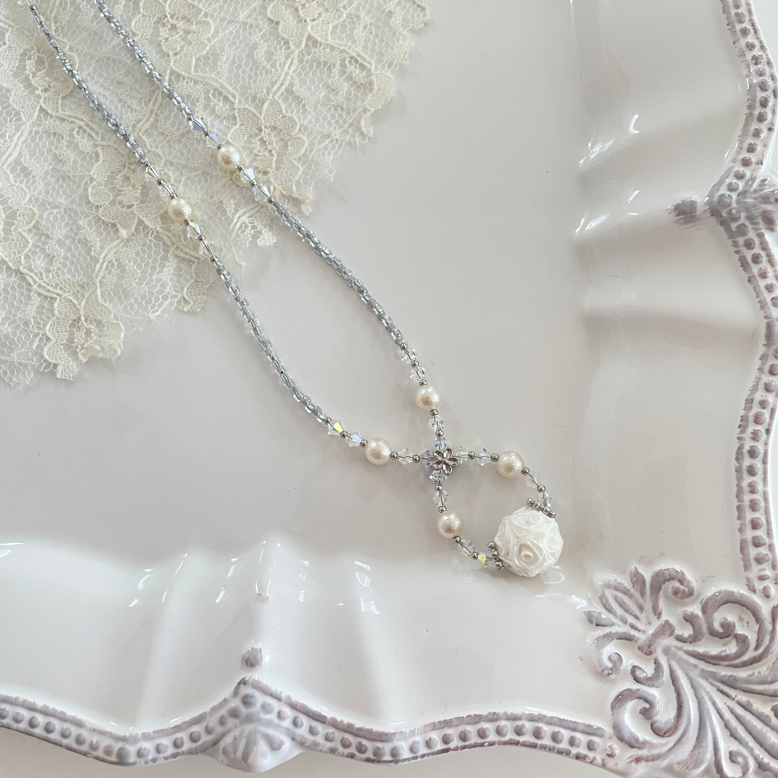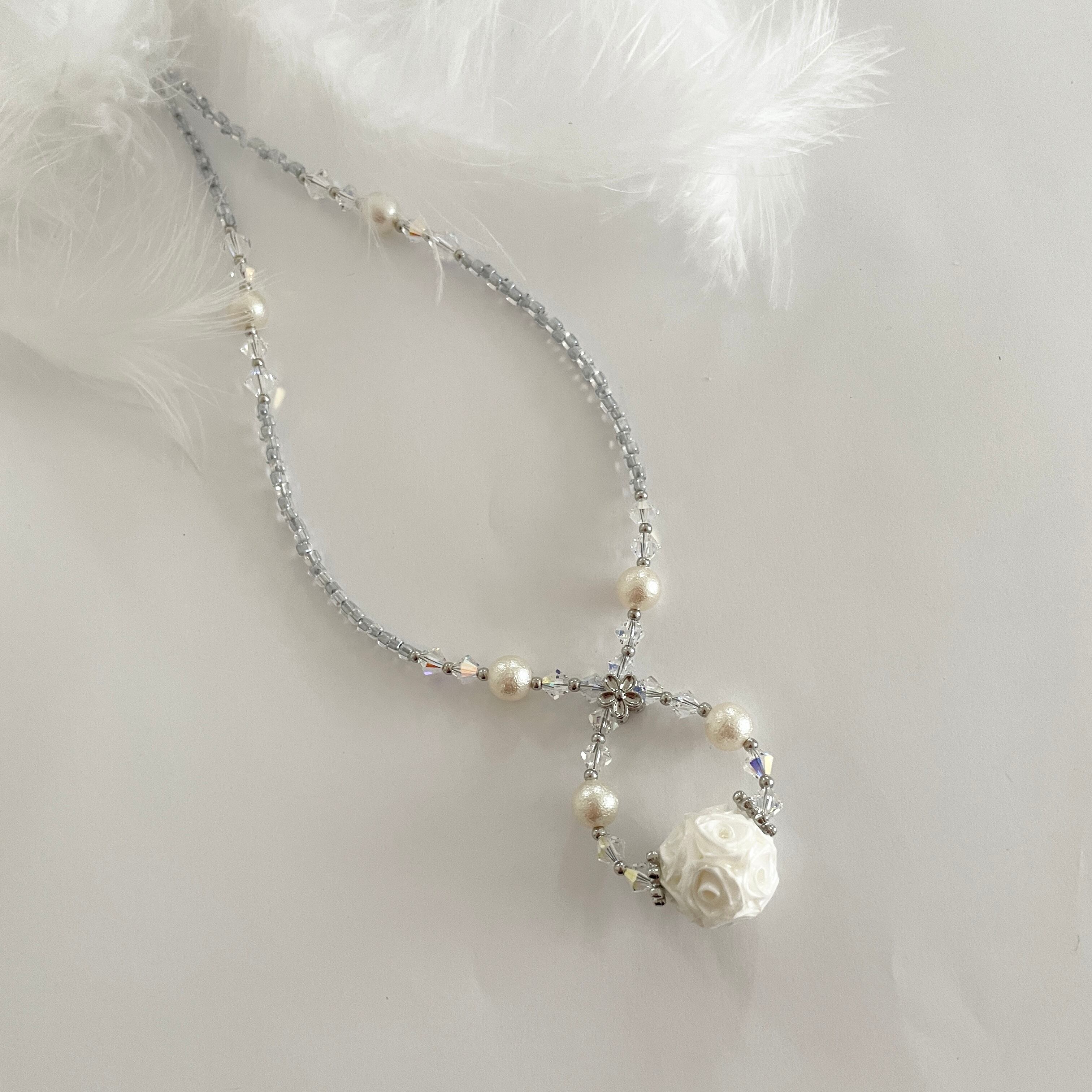 【 エンジェルローズ ・シャインホワイト】薔薇とエンジェルパール®のネックレス