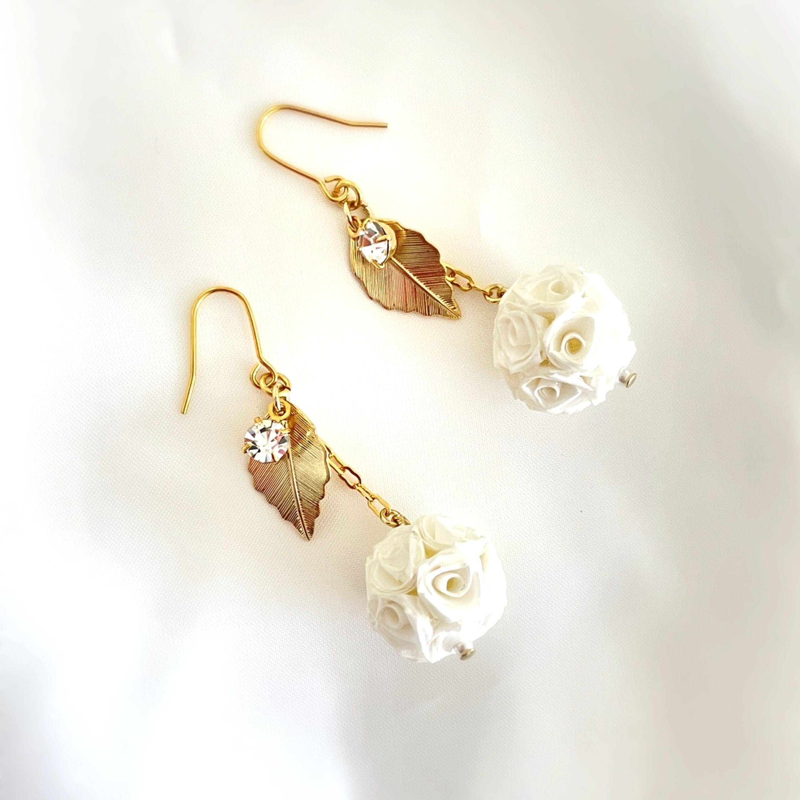 【 雫がきらり 】ホワイトローズのお耳飾り