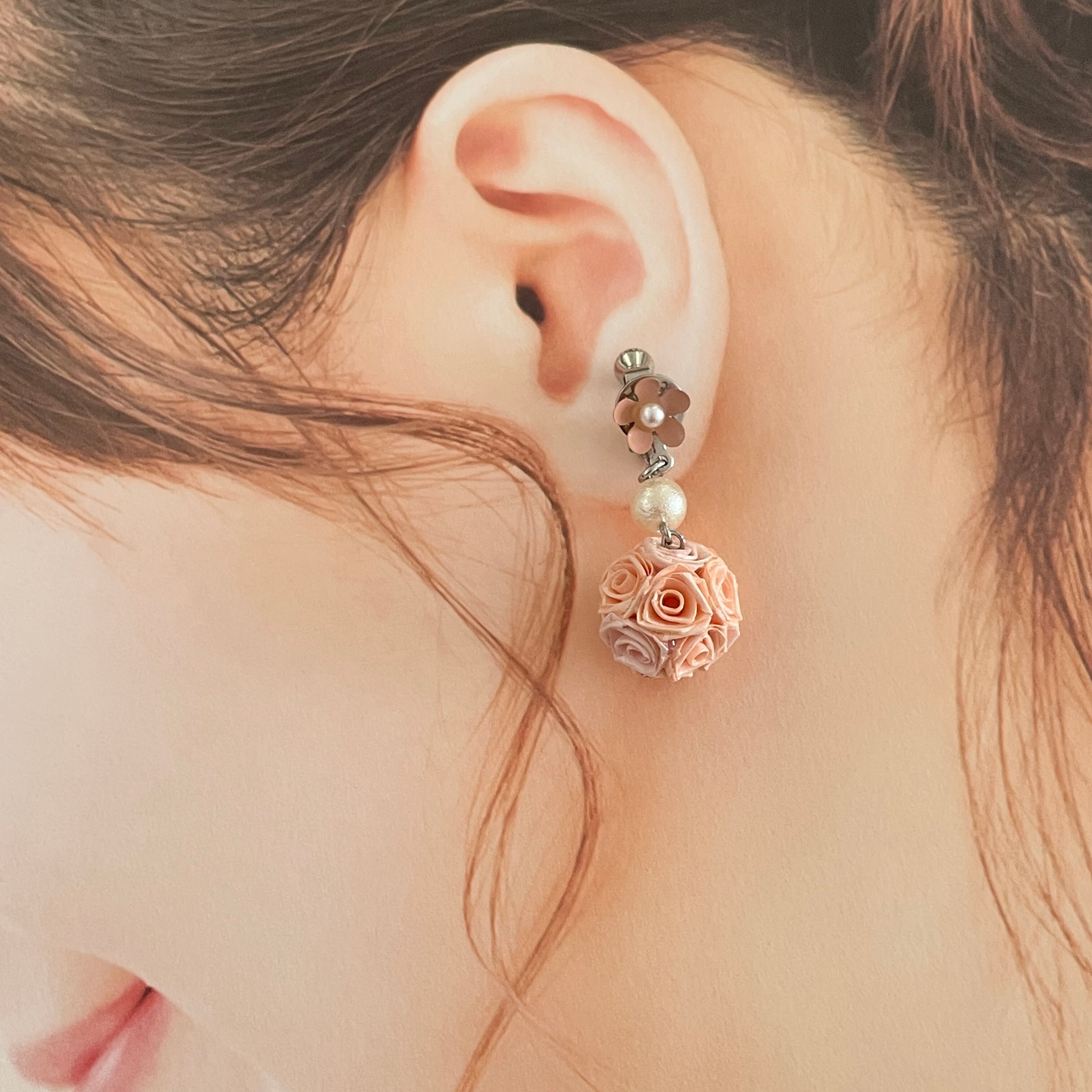 【 ロザフィ薔薇のイヤリング 】ピンクローズ