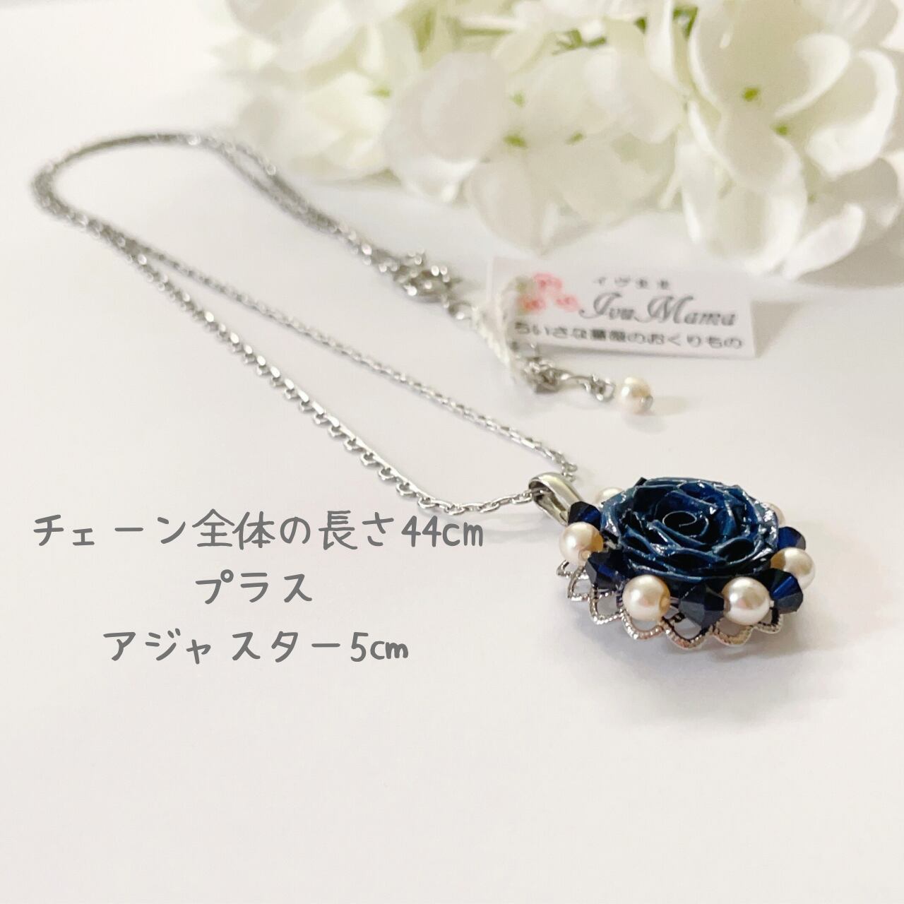 【 ロザフィとスワロフスキークリスタルのきらきらペンダント】ネイビーブルーの薔薇