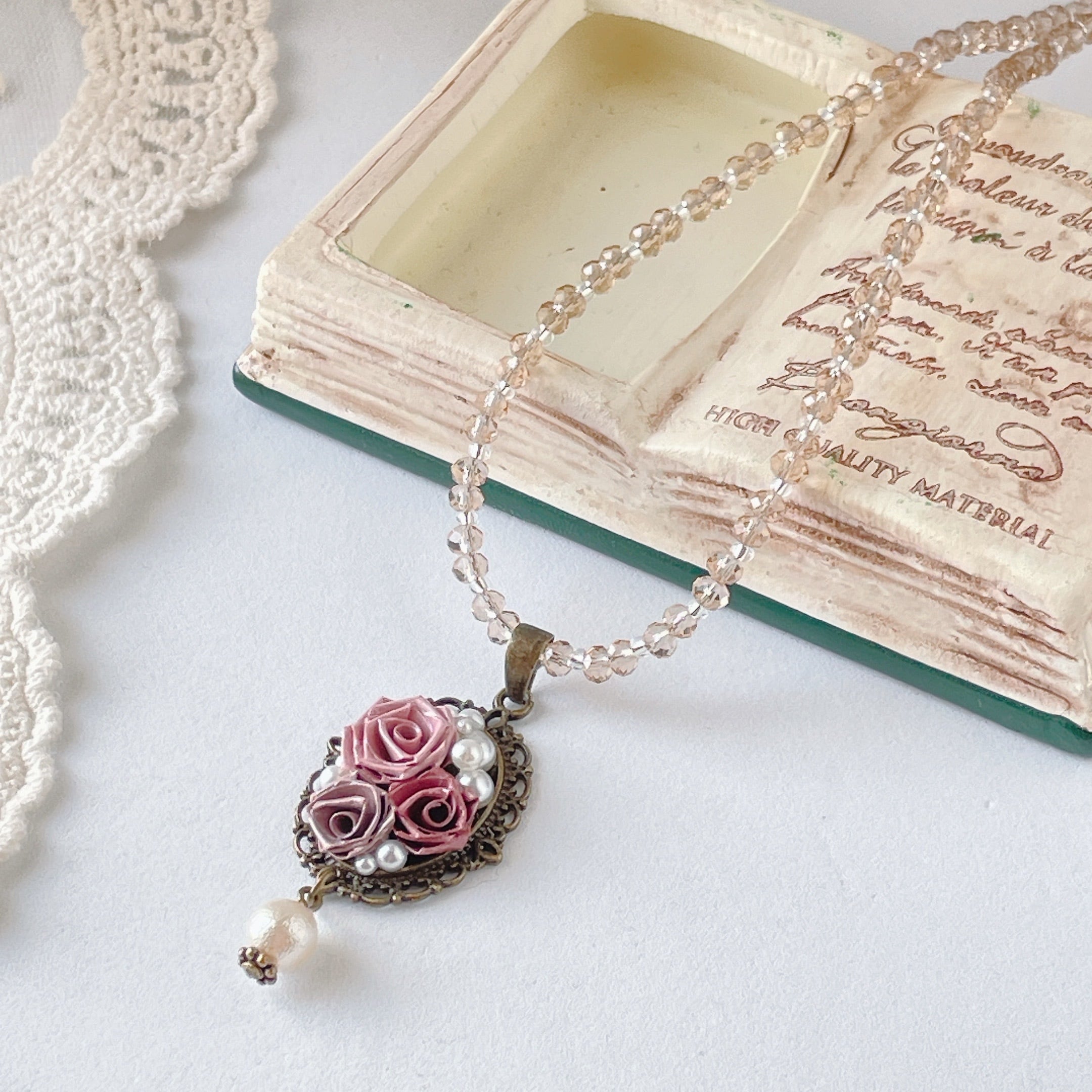 【 ロザフィ薔薇とパールのペンダント 】
